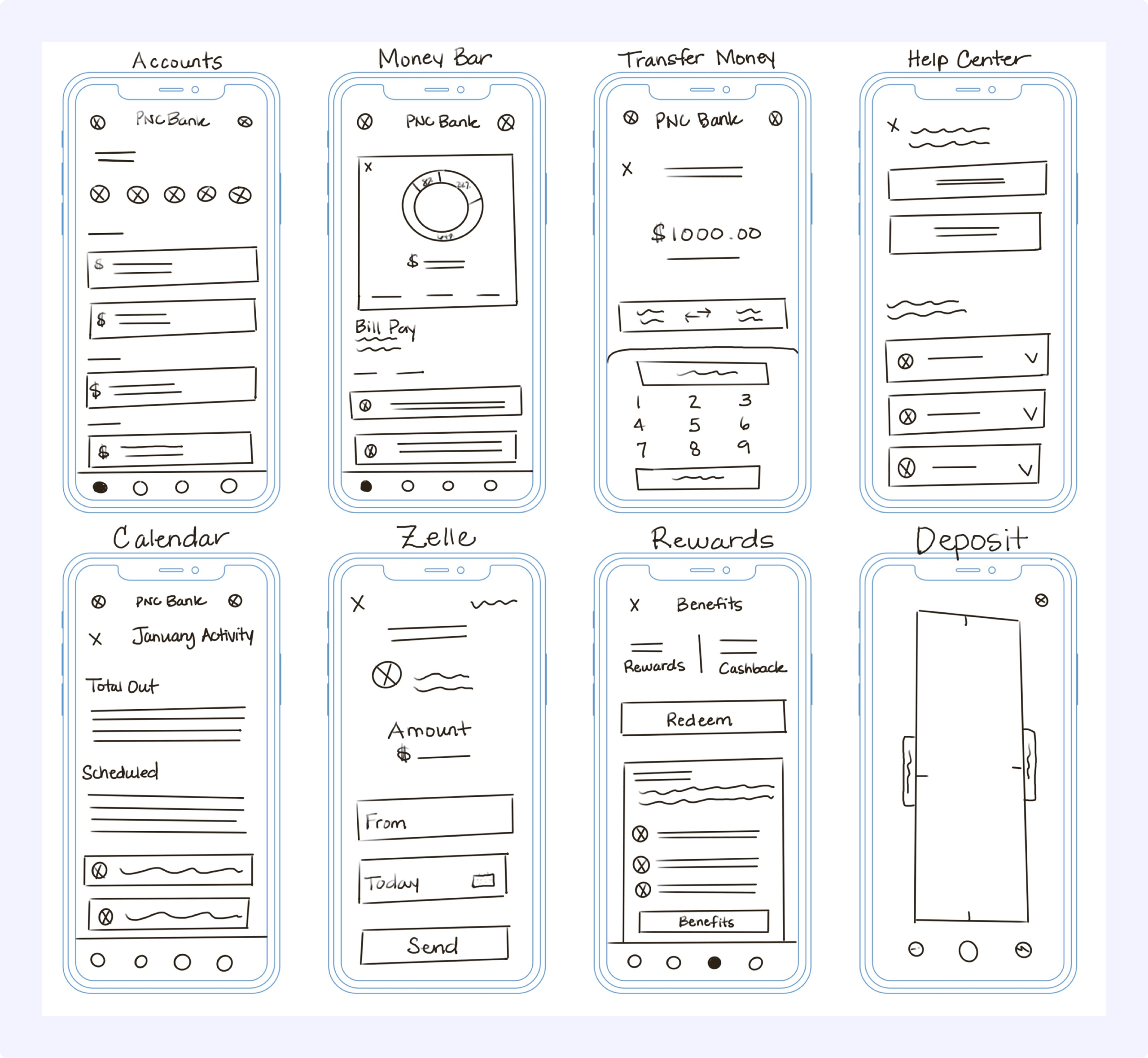 The redesign of PNC's mobile banking app will focus on implementing customizable features and personalized experiences. Through intuitive design and accessible features, I aimed to provide seamless navigation and functionality tailored to individual users, ensuring a unified yet adaptable interface that meets their specific financial needs.