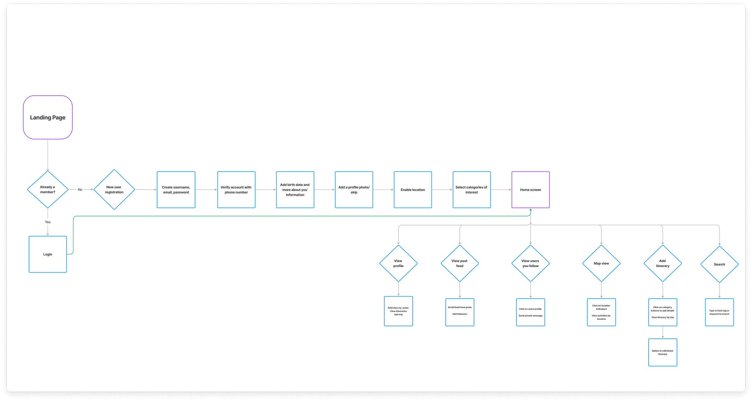 A user flow was thoughtfully designed to enhance user journey efficiency, guaranteeing a seamlessly navigable experience across the Voyager app.