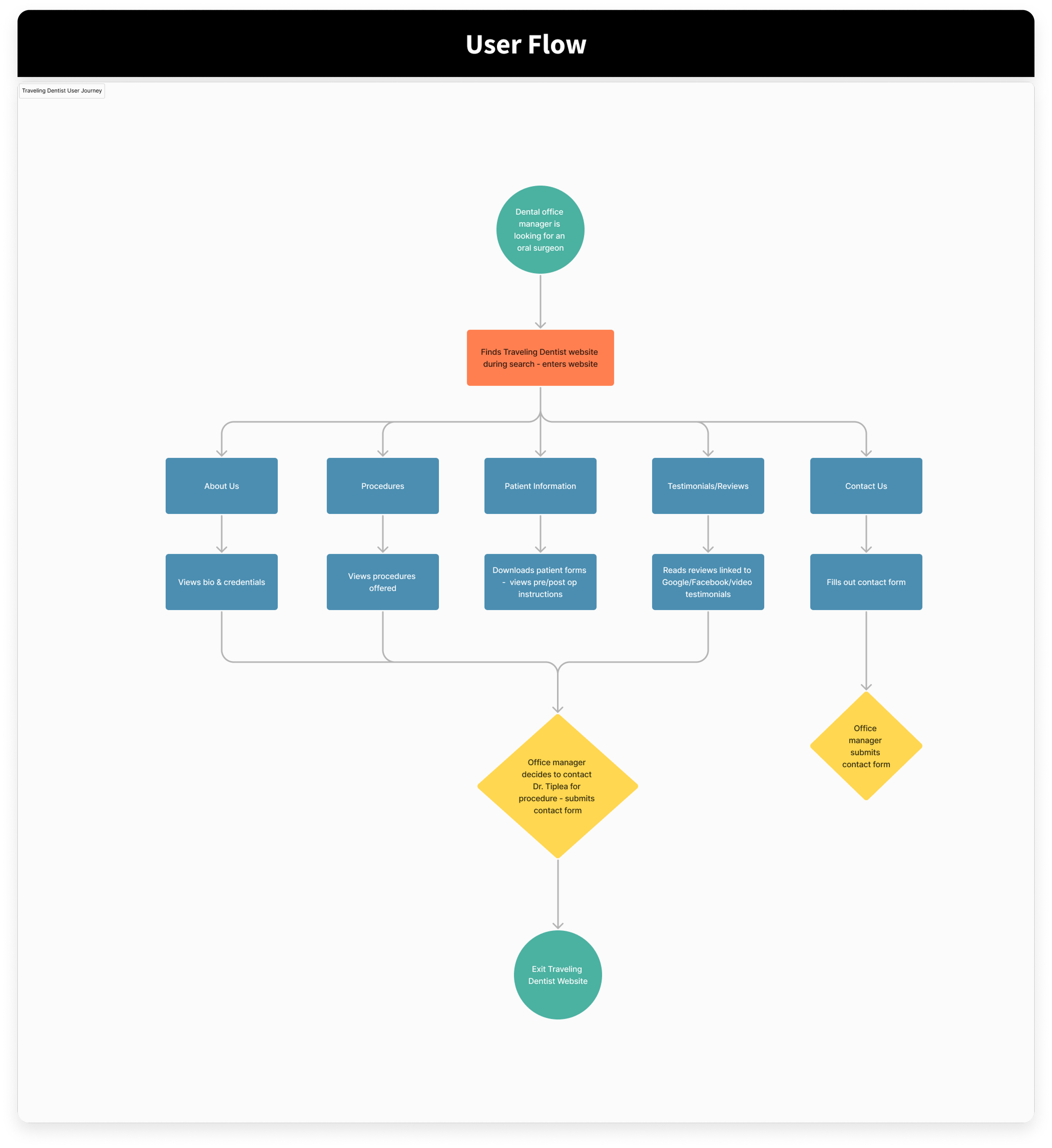 In collaboration with our stakeholder, we identified a pressing need to develop a user-centric website that not only showcases the oral surgeon's specialized services but also prioritizes convenience for both the dental offices and their patients. An intuitive, and visually appealing platform, are crucial to instilling trust and credibility within the competitive dental market, ensuring seamless engagement and satisfaction for all stakeholders involved.