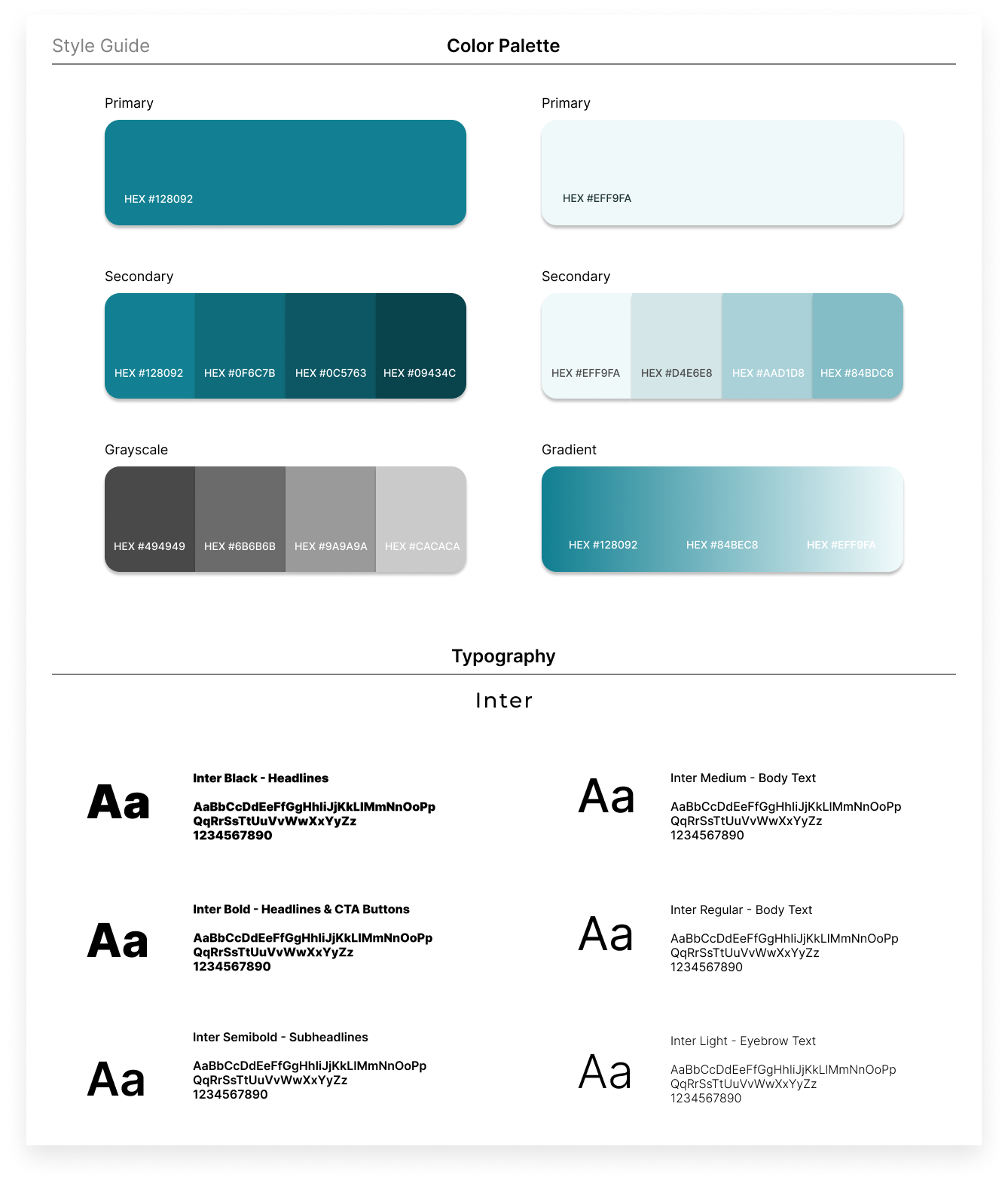 A comprehensive style guide was created that outlines the visual elements and design specifications used to maintain consistency across all brand communications of Dr. Tiplea’s website. It serves as a reference tool for ensuring cohesion in branding elements such as typography, color palette, imagery, and logo usage.